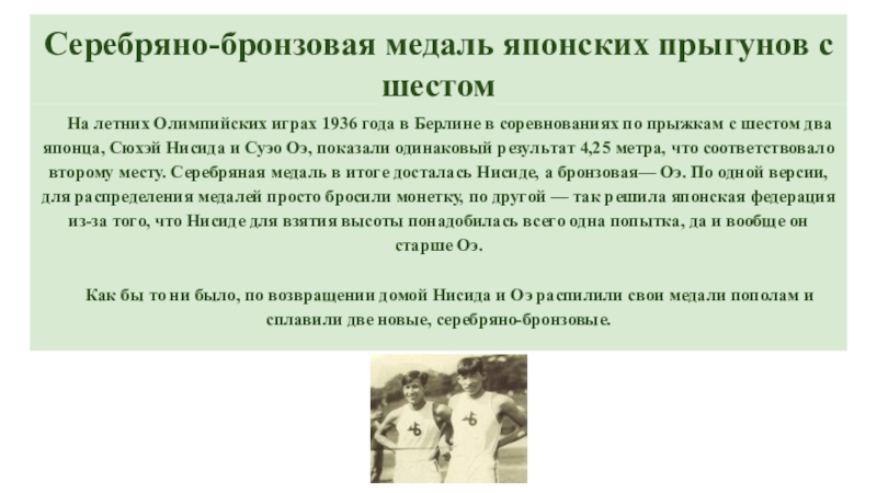 Слайд 15Серебряно-бронзовая медаль японских прыгунов с шестом