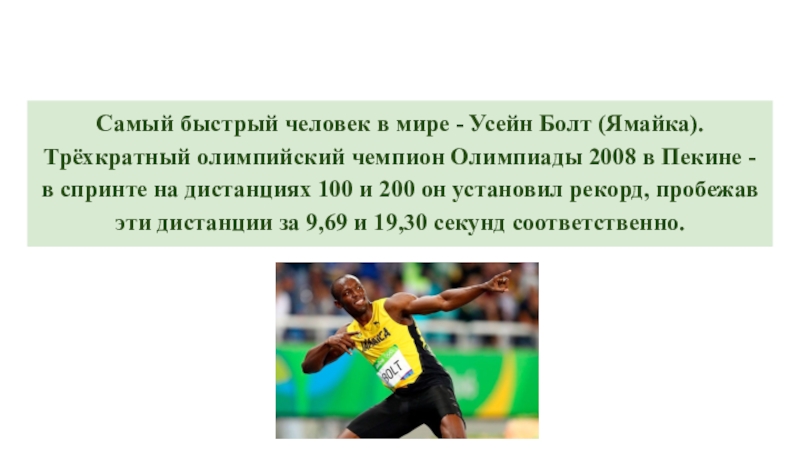 Самый быстрый человек в мире - Усейн Болт (Ямайка). Трёхкратный