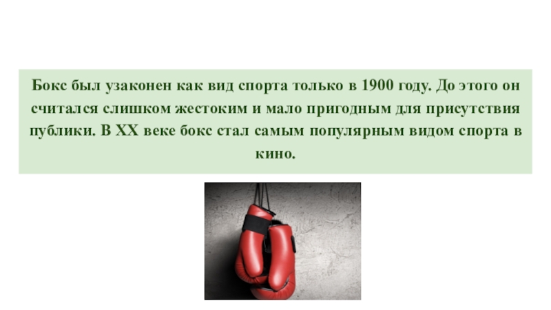 присутствия публики. В XX веке бокс стал самым популярным видом спорта в кино.