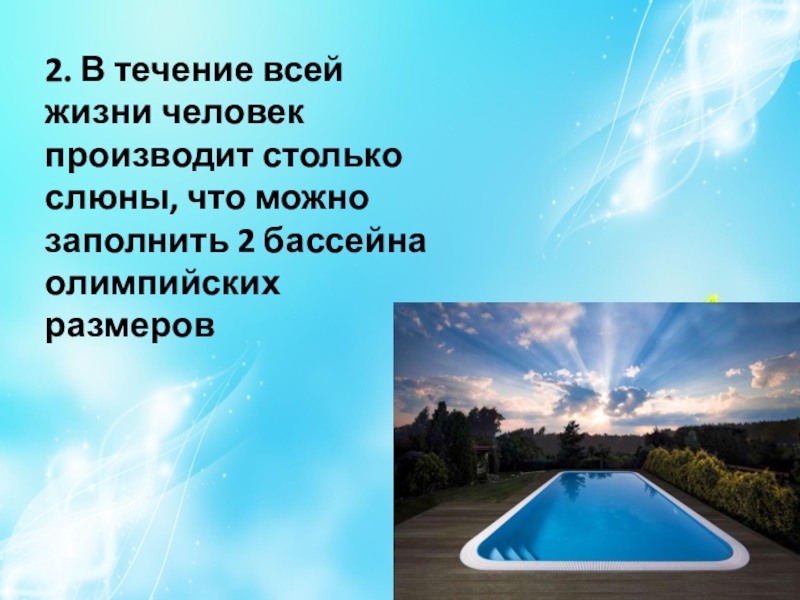 2. В течение всей жизни человек производит столько слюны, что можно заполнить 2 бассейна олимпийских размеров