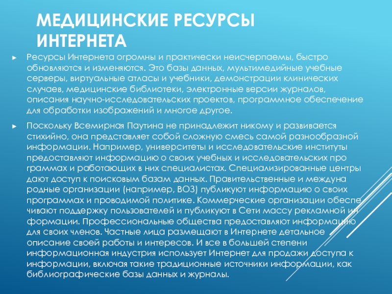 Слайд 2МЕДИЦИНСКИЕ РЕСУРСЫ ИНТЕРНЕТА