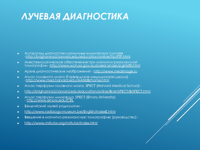 Алгоритмы диагностики различных клинических случаев -http://brighamrad.harvard.edu/education/online/ftp/FTP.html