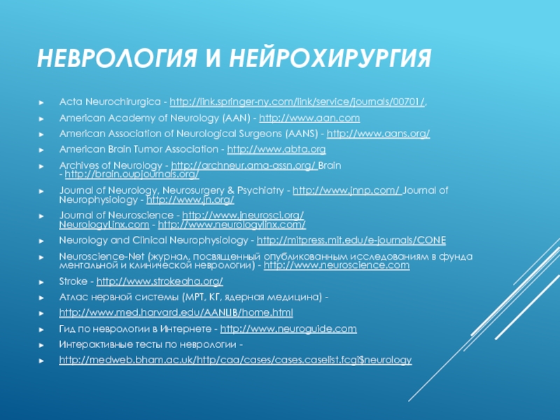 Гид по неврологии в Интернете - http://www.neuroguide.com