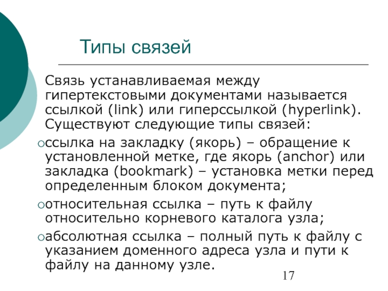 гиперссылкой (hyperlink). Существуют следующие типы связей: