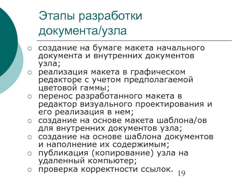 создание на основе макета шаблона/ов для внутренних документов узла;