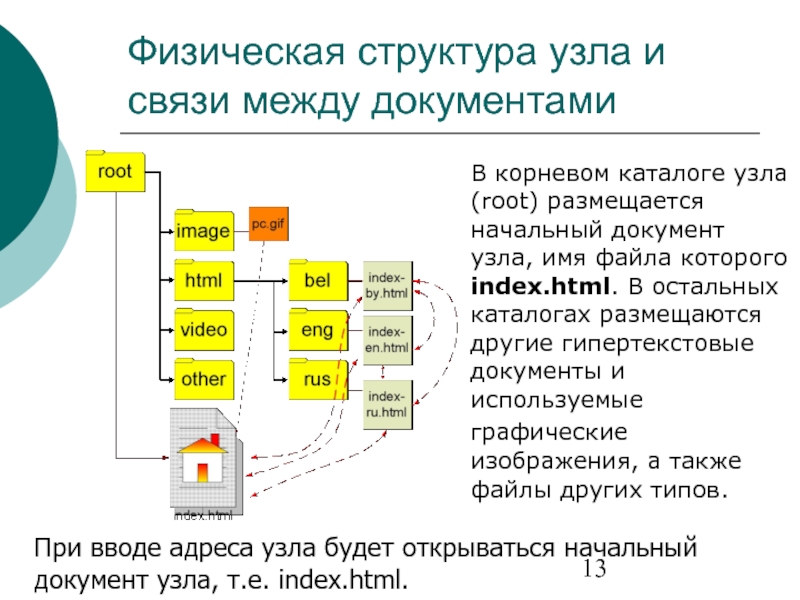 При вводе адреса узла будет открываться начальный документ узла, т.е. index.html.