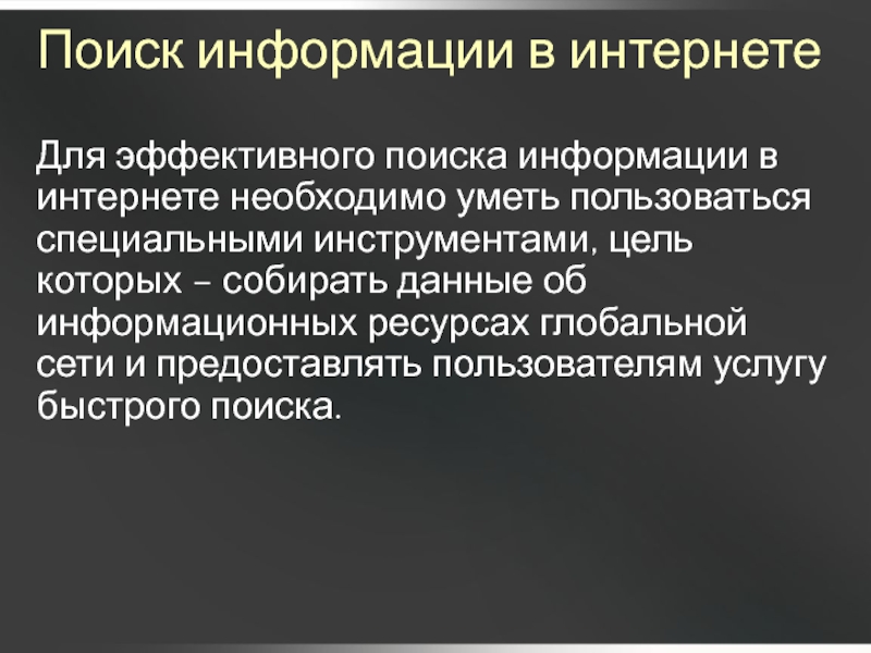 информационных ресурсах глобальной сети и предоставлять пользователям услугу быстрого поиска.