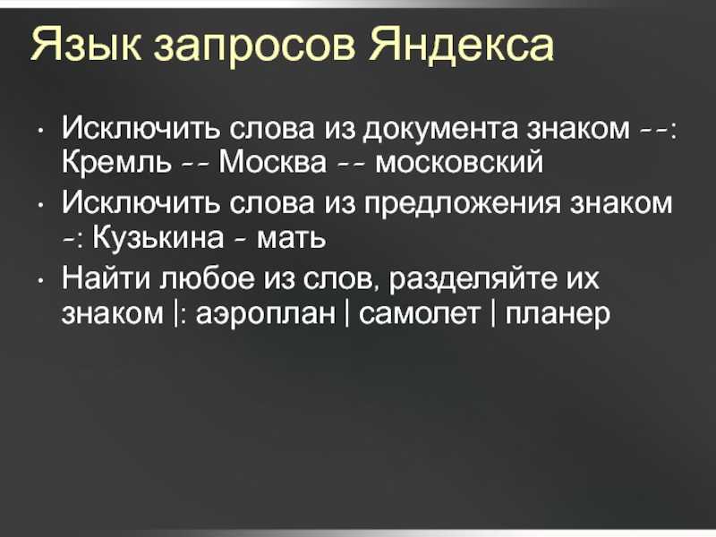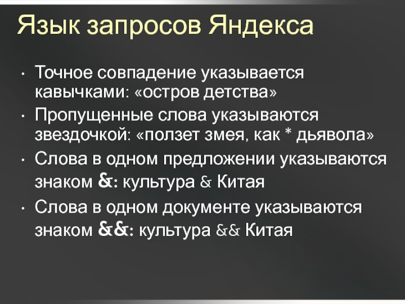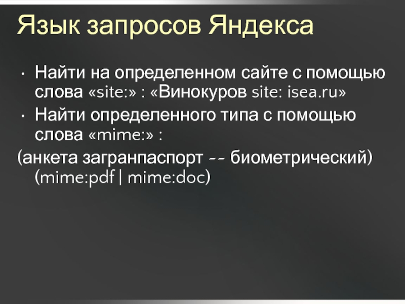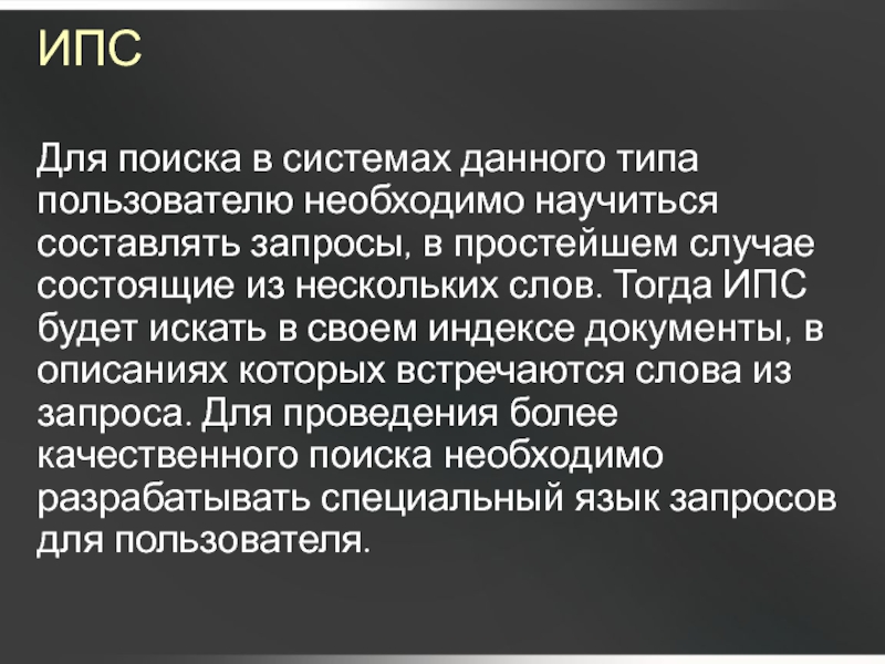 Для поиска в системах данного типа пользователю необходимо научиться составлять