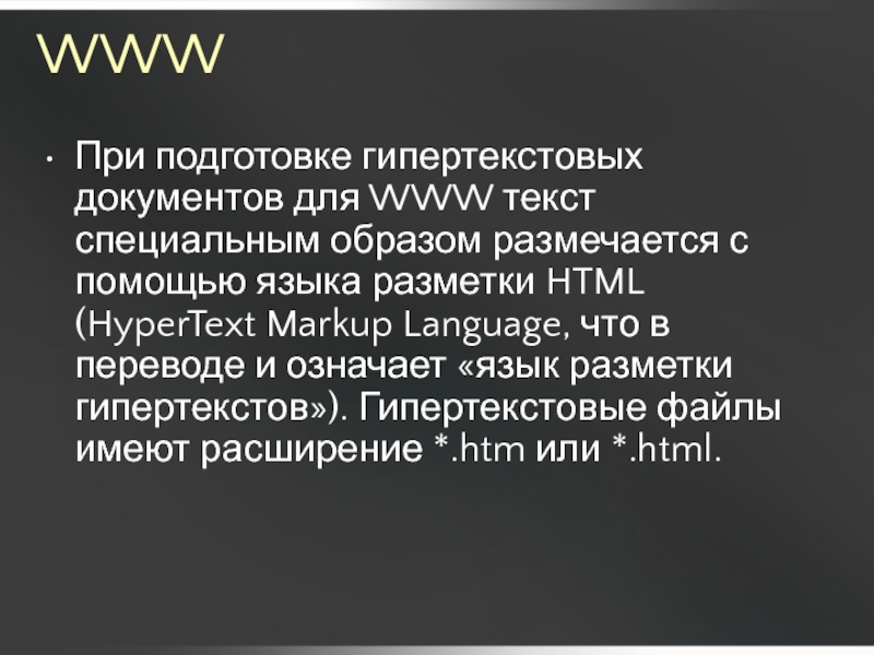 При подготовке гипертекстовых документов для WWW текст специальным образом размечается