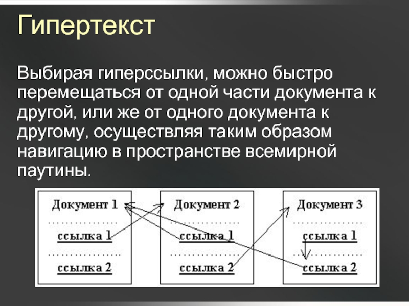 Гипертекст – это текст с выделенными местами – ссылками, которые