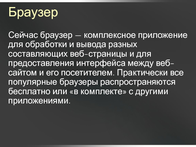 Сейчас браузер — комплексное приложение для обработки и вывода разных