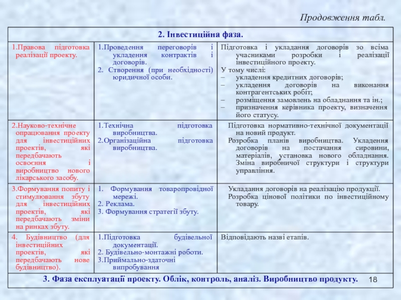 з трьох фаз: передінвестиційна фаза, фаза інвестицій і експлуатаційна фаза.