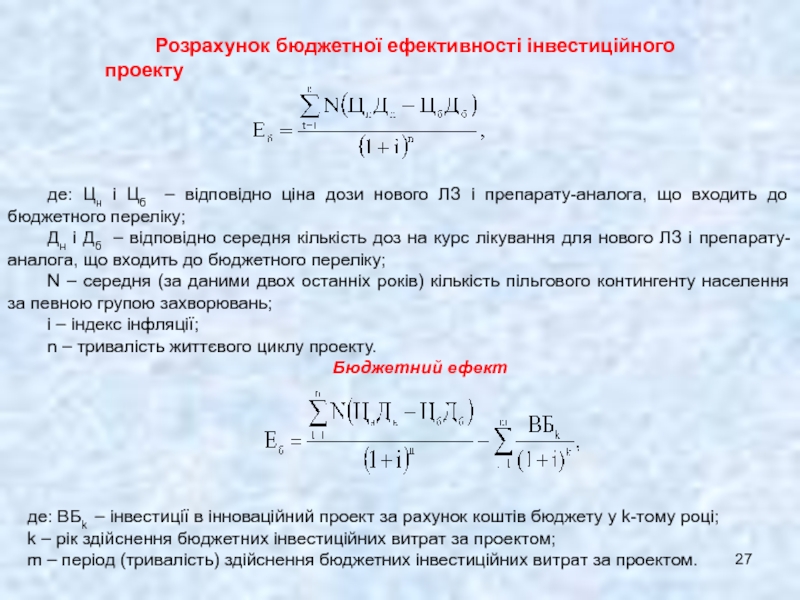 Слайд 27Розрахунок бюджетної ефективності інвестиційного проекту