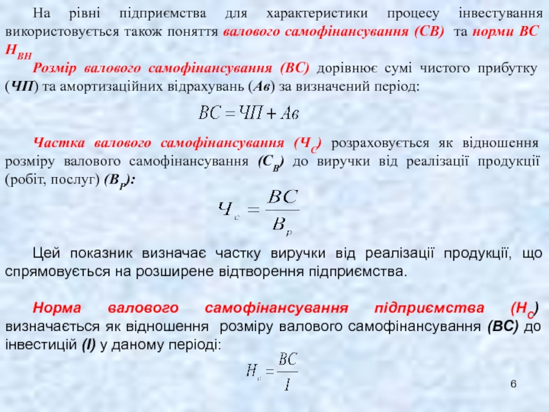 Слайд 6На рівні підприємства для характеристики процесу інвестування використовується також поняття