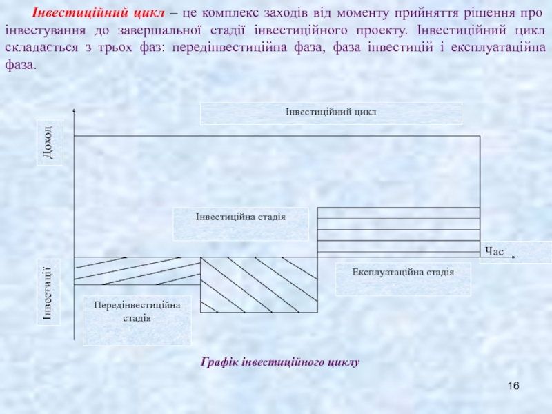 Слайд 16Інвестиційний цикл – це комплекс заходів від моменту прийняття рішення