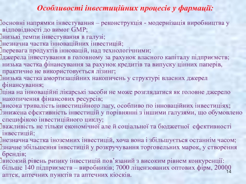 інвестиційної діяльності в Україні та фармацевтичній галузі