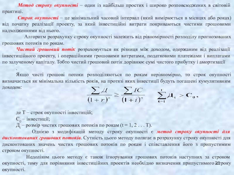 Слайд 20 Метод строку окупності – один із найбільш простих і