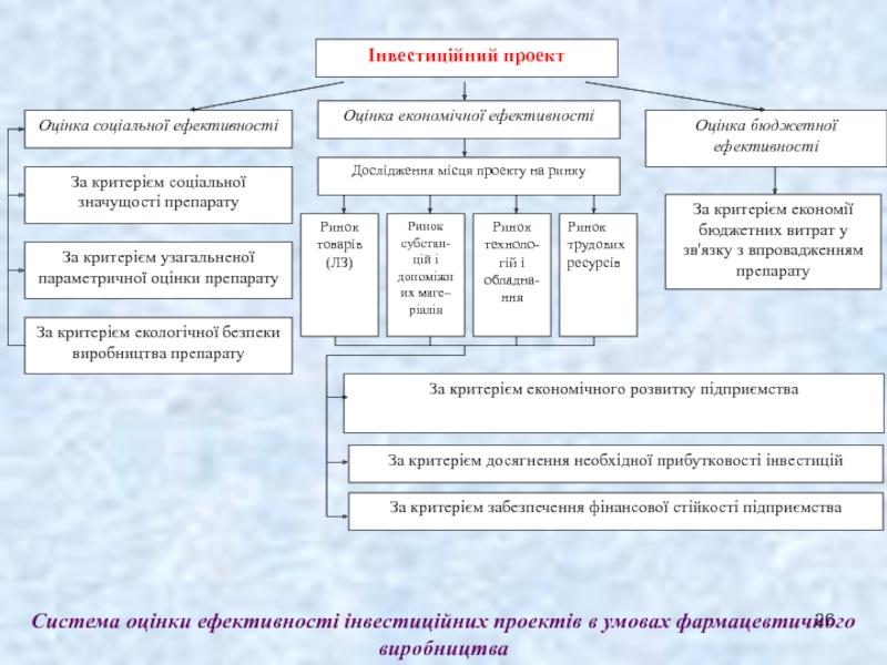 Слайд 26Система оцінки ефективності інвестиційних проектів в умовах фармацевтичного виробництва