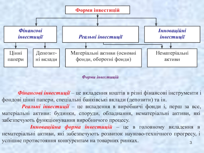 Інноваційна форма інвестицій – це в головному вкладення в нематеріальні активи, які забезпечують розвиток науково-технічного прогресу, і успішне протистояння конкурентам на товарних ринках.