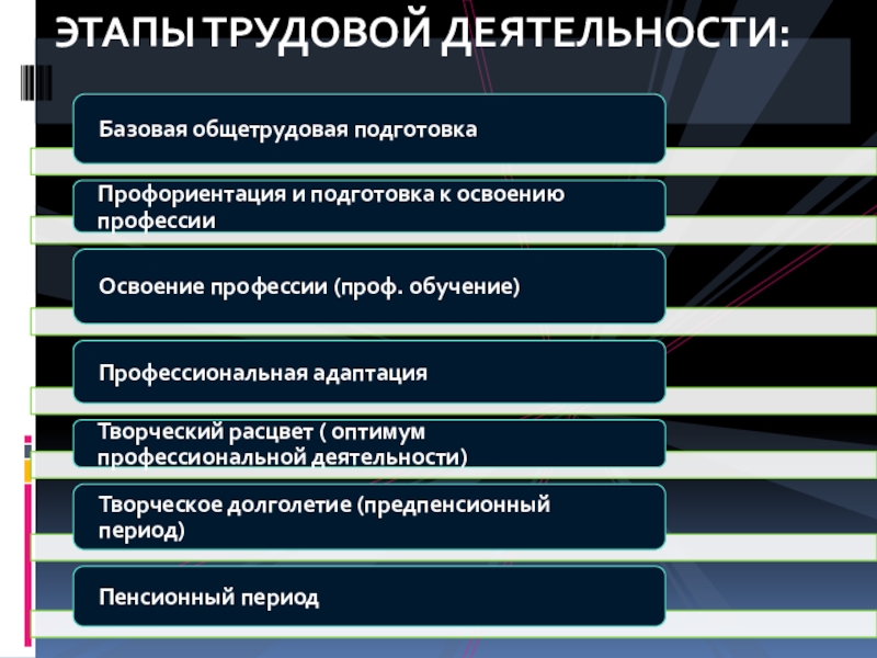 Слайд 8ЭТАПЫ ТРУДОВОЙ ДЕЯТЕЛЬНОСТИ: