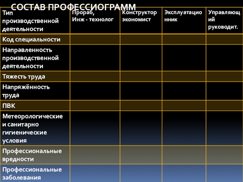 Слайд 14СОСТАВ ПРОФЕССИОГРАММ