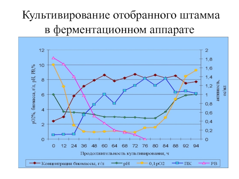 Слайд 27Культивирование отобранного штамма в ферментационном аппарате
