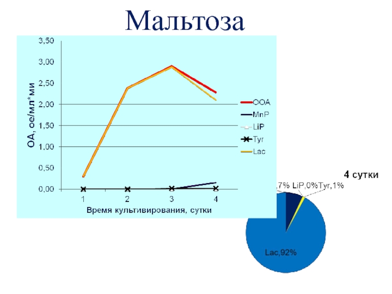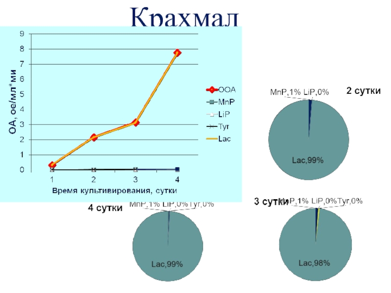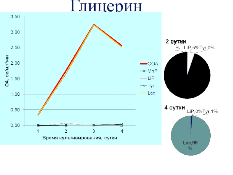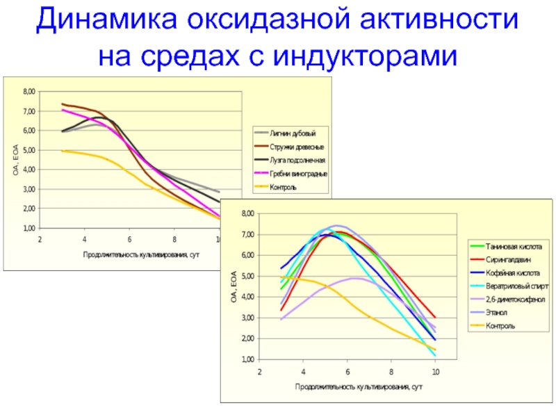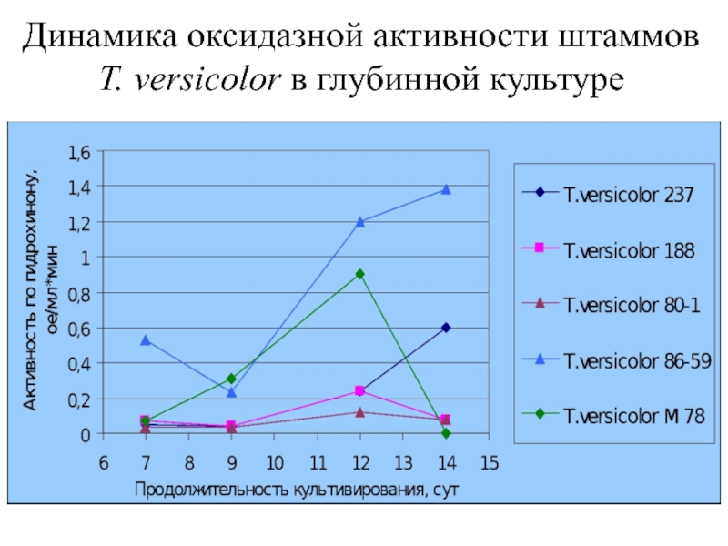 Слайд 25Динамика оксидазной активности штаммов T. versicolor в глубинной культуре