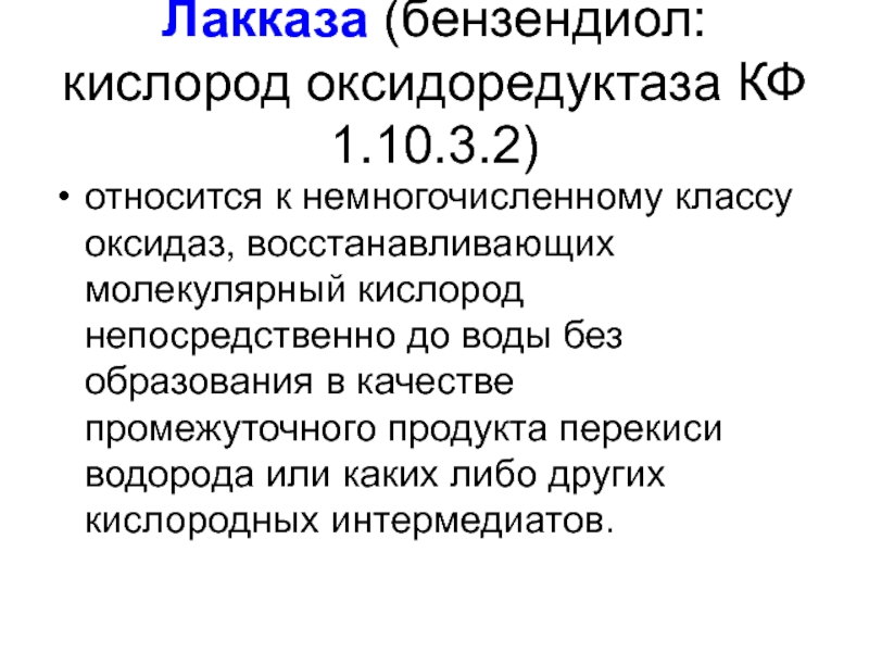 Слайд 9Лакказа (бензендиол: кислород оксидоредуктаза КФ 1.10.3.2)