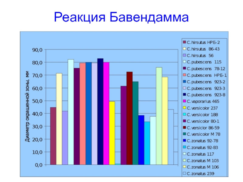 культуре и диаметру окрашенной зоны (реакция Бавендамма)