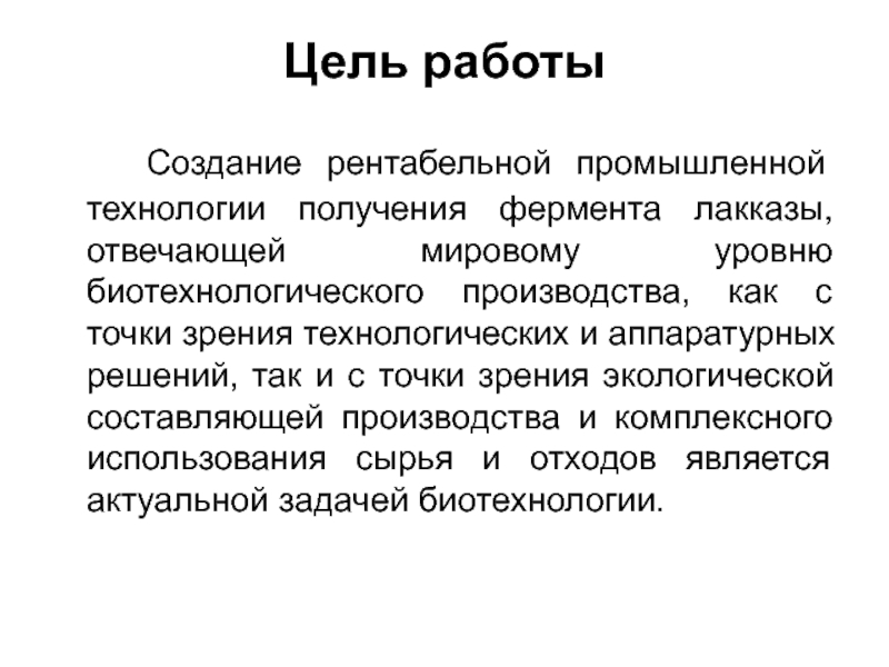 лакказы, отвечающей мировому уровню биотехнологического производства, как с точки зрения