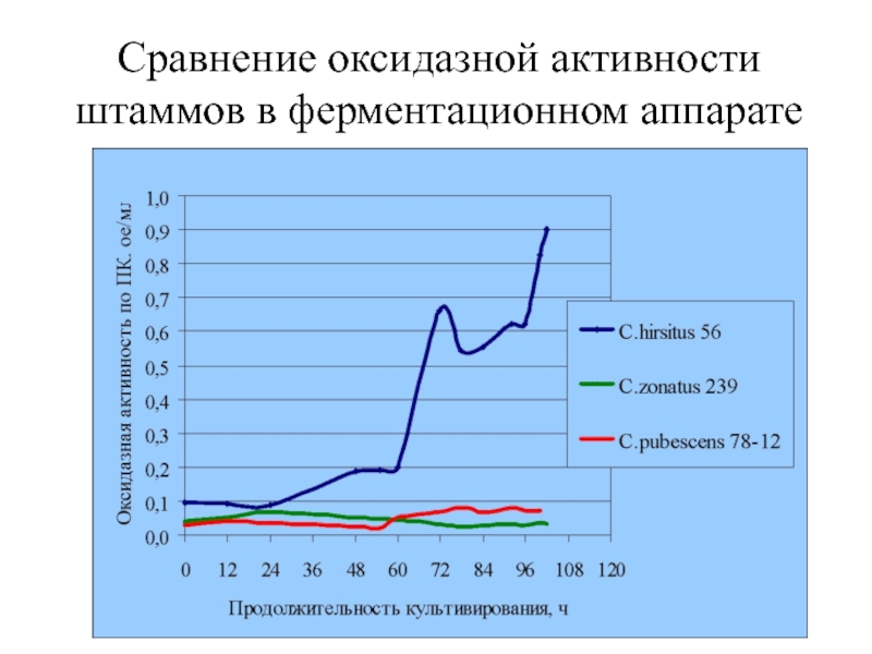 Слайд 26Сравнение оксидазной активности штаммов в ферментационном аппарате