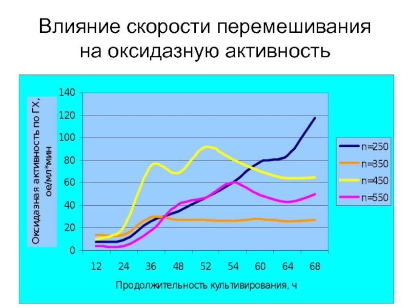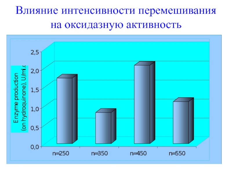 Слайд 39Влияние интенсивности перемешивания на оксидазную активность