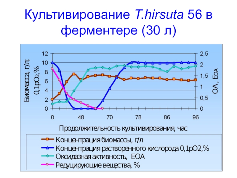 Слайд 43Культивирование Т.hirsuta 56 в ферментере (30 л)
