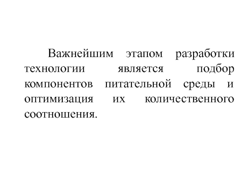 Слайд 28 Важнейшим этапом разработки технологии является подбор компонентов питательной