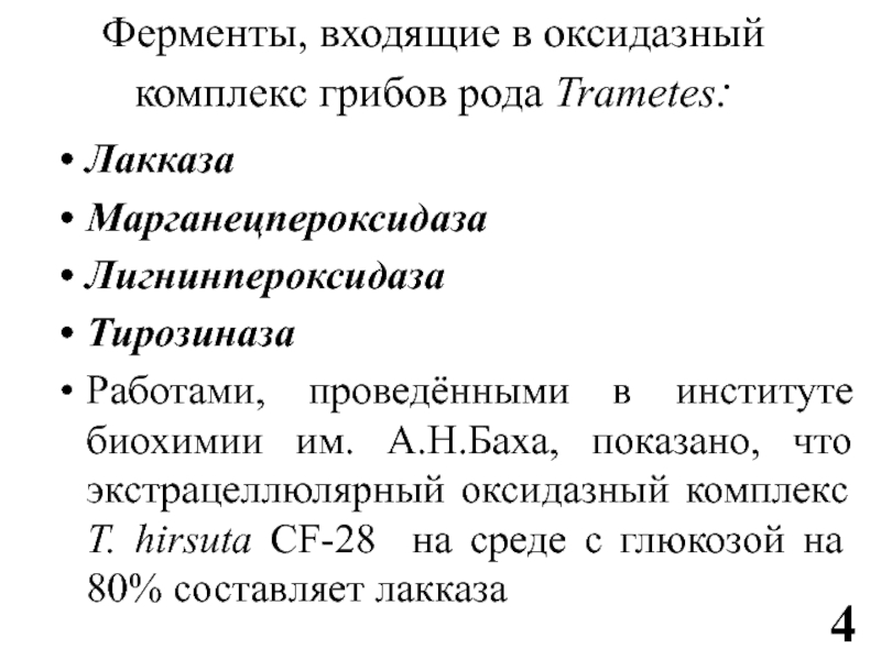 Слайд 48Ферменты, входящие в оксидазный комплекс грибов рода Trametes: