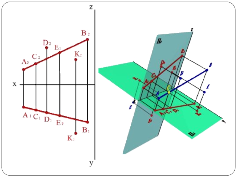 3) если точка принадлежит прямой, то проекция этой точки принадлежит проекции прямой.