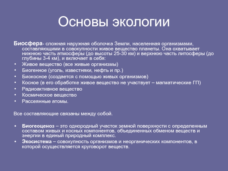 Биосфера- сложная наружная оболочка Земли, населенная организмами, составляющими в