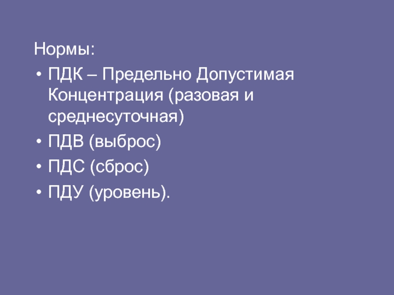 ПДК – Предельно Допустимая Концентрация (разовая и среднесуточная)