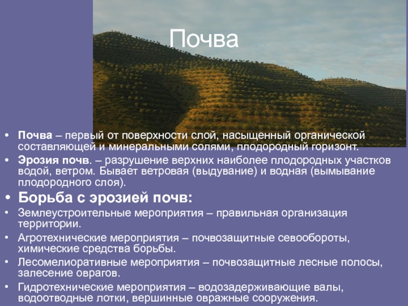 Эрозия почв. – разрушение верхних наиболее плодородных