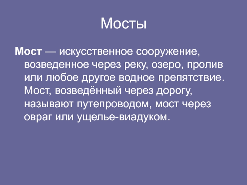 Мост — искусственное сооружение, возведенное через реку, озеро, пролив или