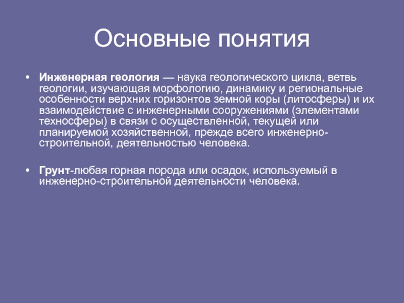 Инженерная геология — наука геологического цикла, ветвь геологии, изучающая