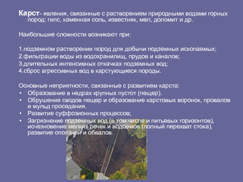 из инженерки - особенности строительства - в криолитозоне, где карст, где сели, защита от этих процессов