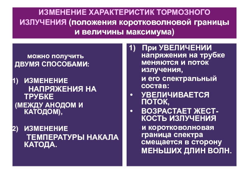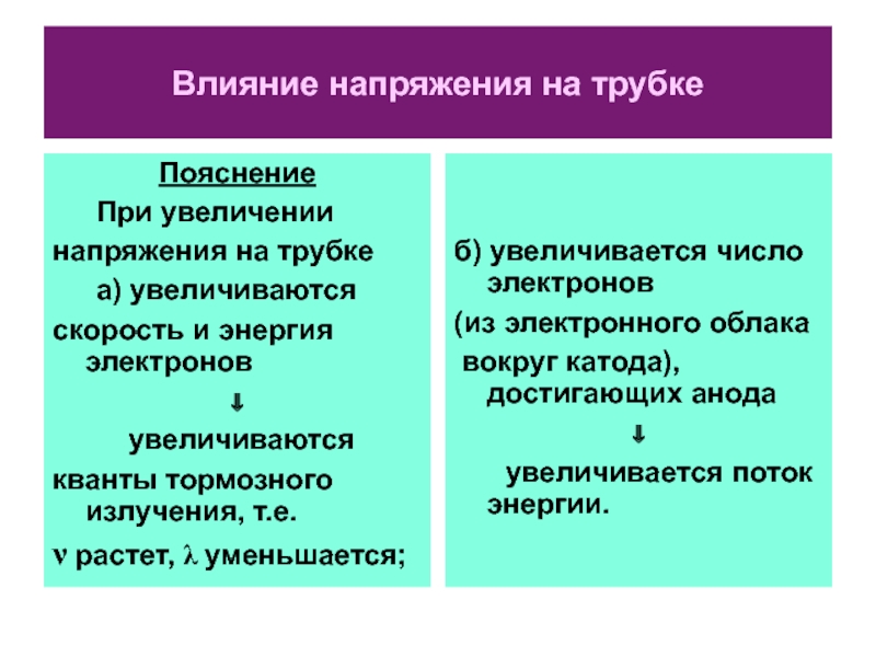 1) При УВЕЛИЧЕНИИ напряжения на трубке меняются и поток излучения,
