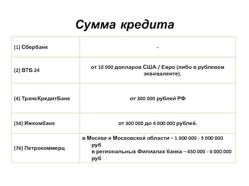 Привлечение созаемщиков: физические лица, не более 3-х человек, доход которых учитывается при расчете максимального размера кредита.