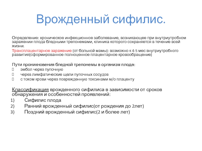 Определение: хроническое инфекционное заболевание, возникающее при внутриутробном заражении плода