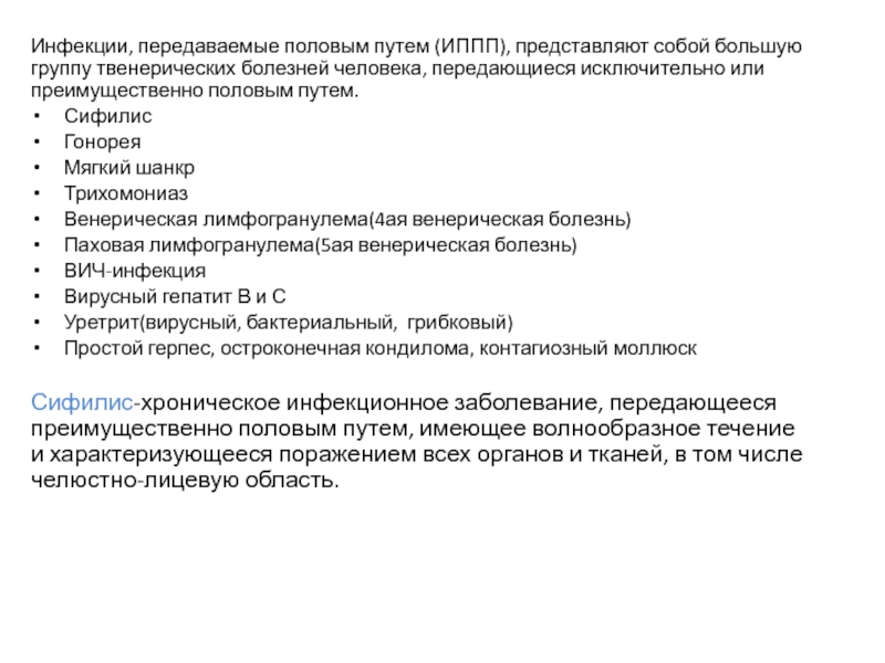 Слайд 2Инфекции, передаваемые половым путем (ИППП), представляют собой большую группу твенерических