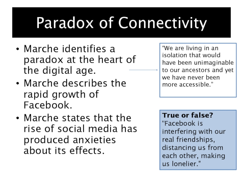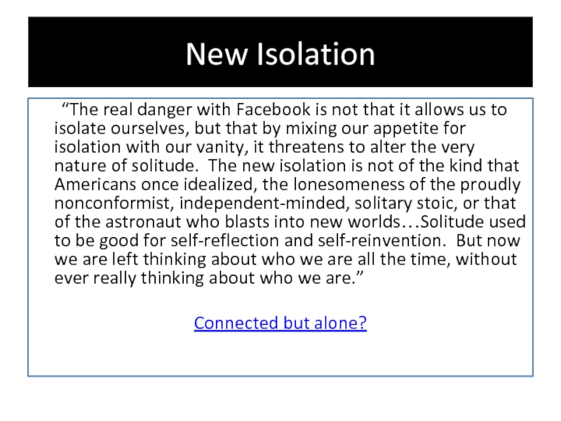 that the rise of social media has produced anxieties about its effects.“We are living in an isolation that would have been unimaginable to our ancestors and yet we have never been more accessible.”