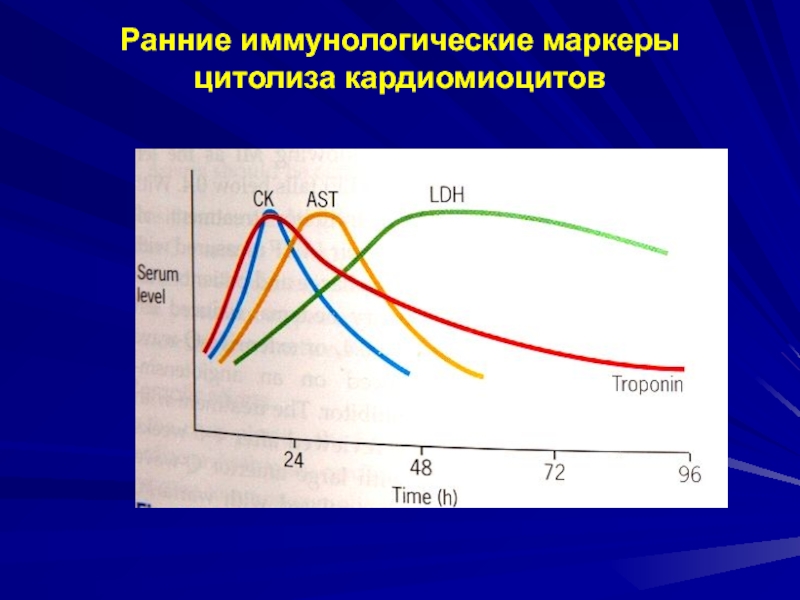 Слайд 28Ранние иммунологические маркеры цитолиза кардиомиоцитов