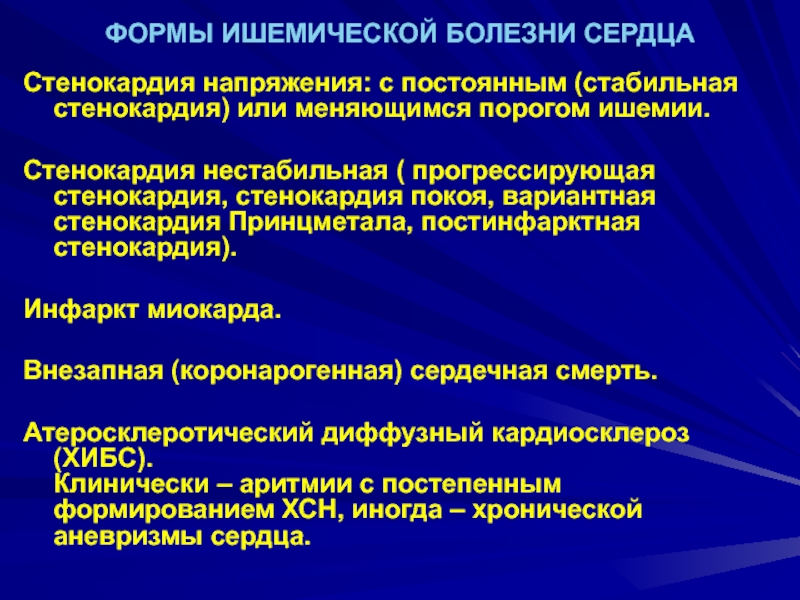 Слайд 5ФОРМЫ ИШЕМИЧЕСКОЙ БОЛЕЗНИ СЕРДЦА