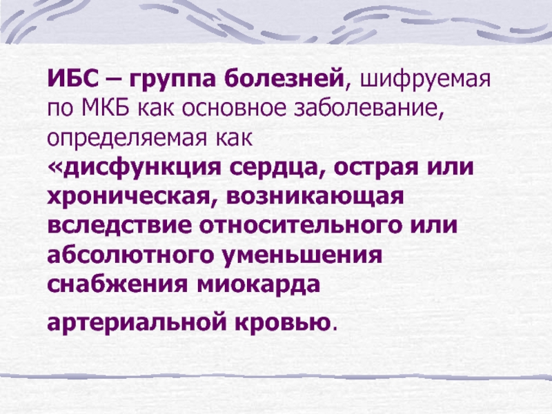 Слайд 5ИБС – группа болезней, шифруемая по МКБ как основное заболевание,